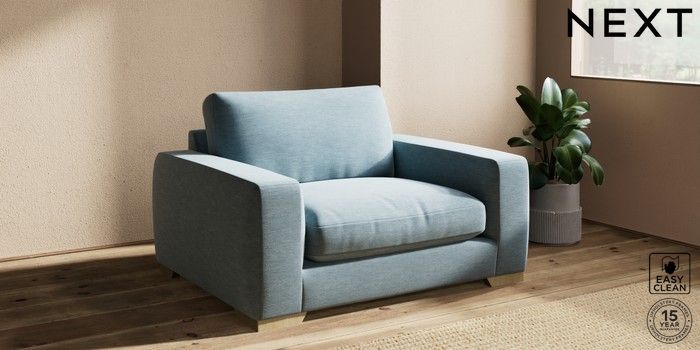 7.2.10 Houghton Deep Relaxed Sit Snuggle Fine Chenille Easy Clean Mid Blue Large Square Angle - Light | Made Click here to use our website with more accessibility support, for example screen readers