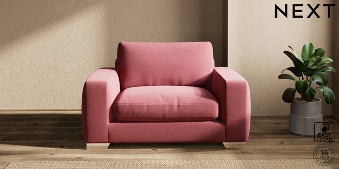 7.2.10 Houghton Deep Relaxed Sit Snuggle Fine Chenille Easy Clean Mid Pink Large Square Angle - Chrome Metal | Made Click here to use our website with more accessibility support, for example screen readers