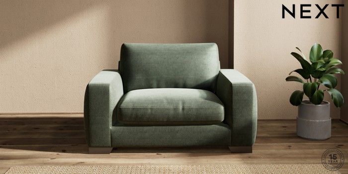 7.2.10 Houghton Deep Relaxed Sit Snuggle Luxe Chenille Mid Green Large Square Angle - Gunmetal | Made Click here to use our website with more accessibility support, for example screen readers