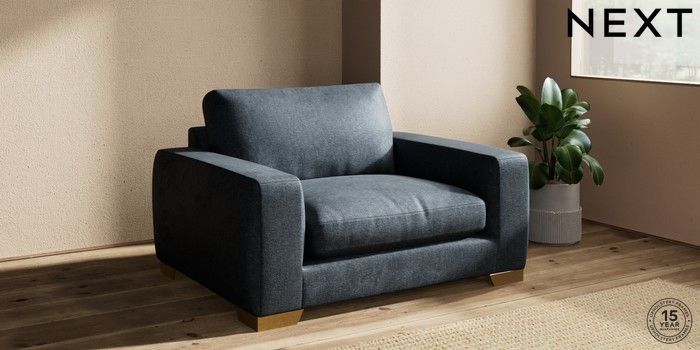 7.2.10 Houghton Deep Relaxed Sit Snuggle Plush Chenille Slate Blue Large Square Angle - Brushed Brass | Made Click here to use our website with more accessibility support, for example screen readers