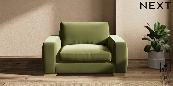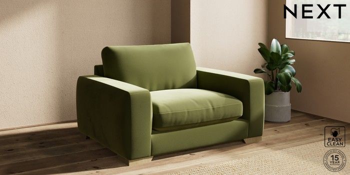 7.2.10 Houghton Deep Relaxed Sit Snuggle Plush Velvet Easy Clean Mid Olive Green Large Square Angle - Light | Made Click here to use our website with more accessibility support, for example screen readers