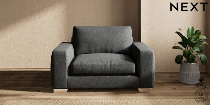 7.2.10 Houghton Deep Relaxed Sit Snuggle Tweedy Blend Easy Clean Charcoal Grey Large Square Angle - Chrome Metal | Made Click here to use our website with more accessibility support, for example screen readers