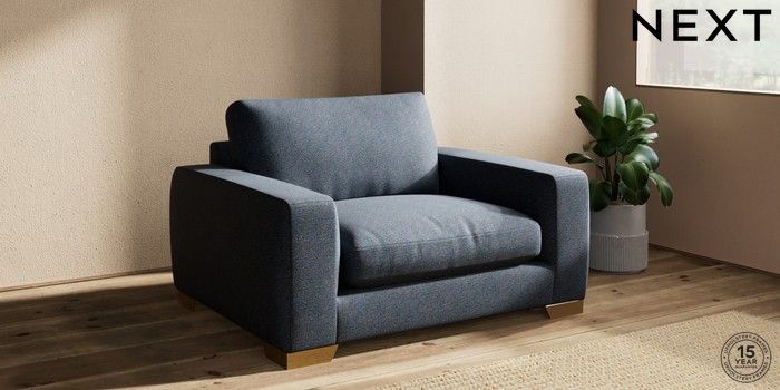 7.2.10 Houghton Deep Relaxed Sit Snuggle Tweedy Chenille Navy Blue Large Square Angle - Brushed Brass | Made Click here to use our website with more accessibility support, for example screen readers
