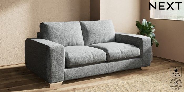 7.2.10 Houghton Deep Relaxed Sit Sofa Bed Chunky Boucle Easy Clean Mid Grey Large Square Angle - Chrome Metal | Made Click here to use our website with more accessibility support, for example screen readers