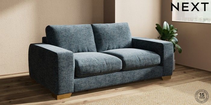 7.2.10 Houghton Deep Relaxed Sit Sofa Bed Chunky Chenille Dark Navy Blue Large Square Angle - Brushed Brass | Made Click here to use our website with more accessibility support, for example screen readers