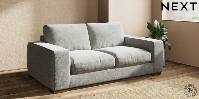 7.2.10 Houghton Deep Relaxed Sit Sofa Bed Chunky Chenille Light Grey Large Square Angle - Mid | Made Click here to use our website with more accessibility support, for example screen readers