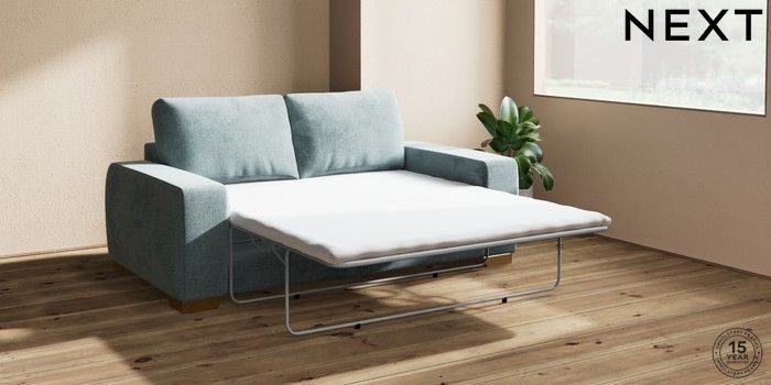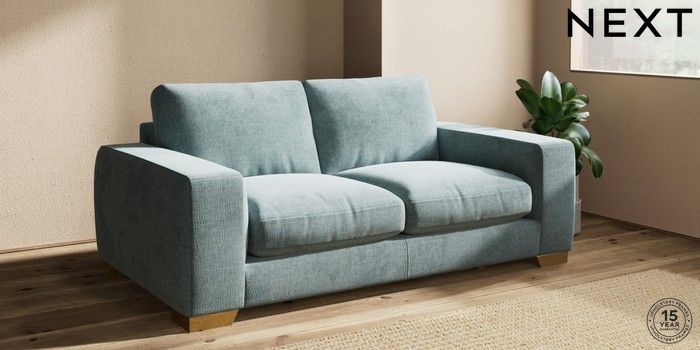 7.2.10 Houghton Deep Relaxed Sit Sofa Bed Chunky Chenille Light Teal Green Large Square Angle - Brushed Brass | Made Click here to use our website with more accessibility support, for example screen readers