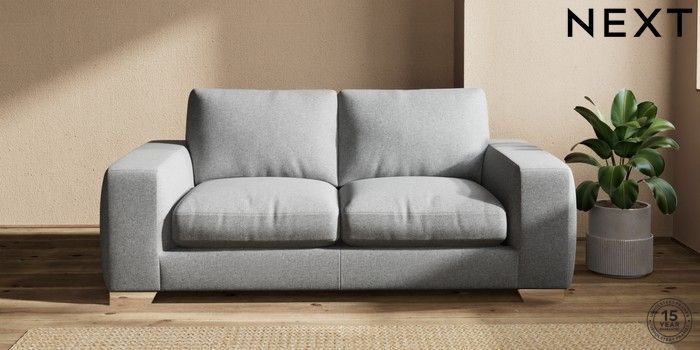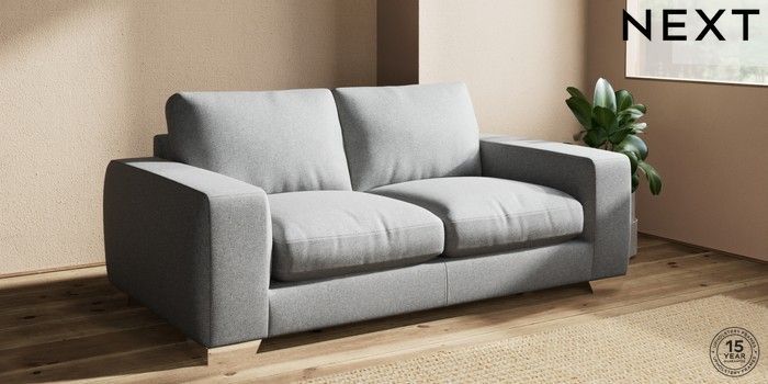 7.2.10 Houghton Deep Relaxed Sit Sofa Bed Chunky Weave Mid Grey Large Square Angle - Chrome Metal | Made Click here to use our website with more accessibility support, for example screen readers