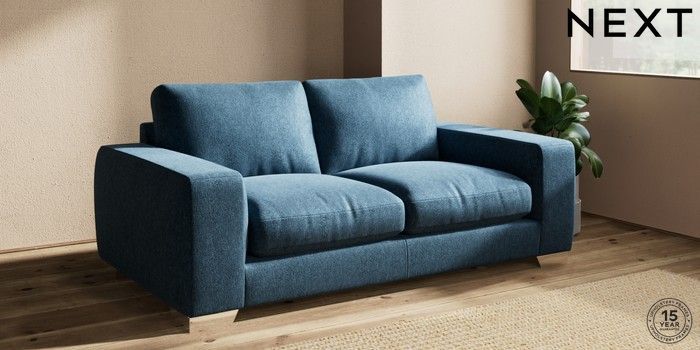 7.2.10 Houghton Deep Relaxed Sit Sofa Bed Cotswold Chenille Dark Blue Large Square Angle - Chrome Metal | Made Click here to use our website with more accessibility support, for example screen readers