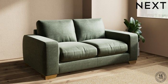 7.2.10 Houghton Deep Relaxed Sit Sofa Bed Luxe Chenille Mid Green Large Square Angle - Brushed Brass | Made Click here to use our website with more accessibility support, for example screen readers