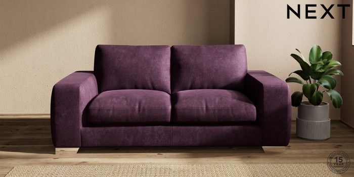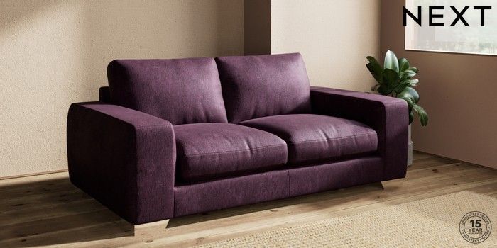 7.2.10 Houghton Deep Relaxed Sit Sofa Bed Plush Chenille Dark Plum Purple Large Square Angle - Chrome Metal | Made Click here to use our website with more accessibility support, for example screen readers