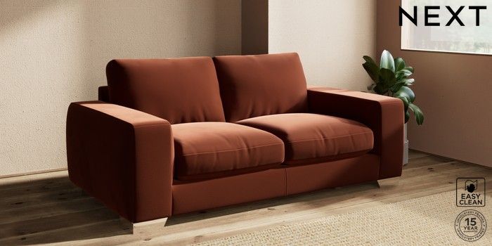 7.2.10 Houghton Deep Relaxed Sit Sofa Bed Plush Velvet Easy Clean Ginger Orange Large Square Angle - Chrome Metal | Made Click here to use our website with more accessibility support, for example screen readers