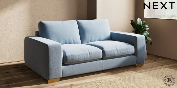 7.2.10 Houghton Deep Relaxed Sit Sofa Bed Relaxed Linen Look Mid Blue Large Square Angle - Brushed Brass | Made Click here to use our website with more accessibility support, for example screen readers