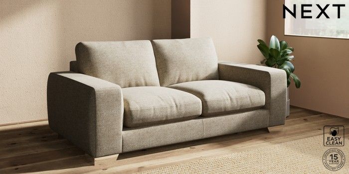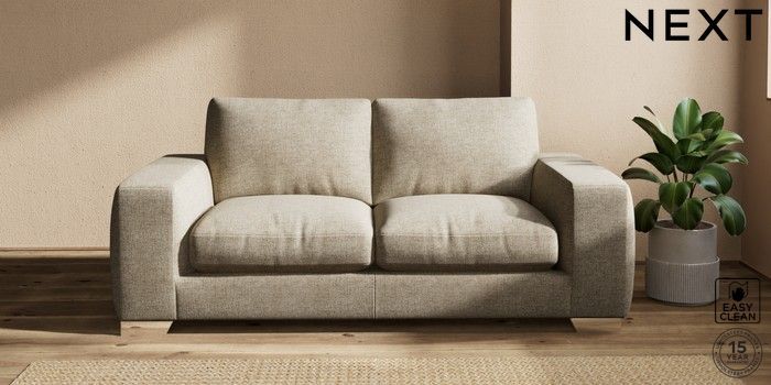 7.2.10 Houghton Deep Relaxed Sit Sofa Bed Woven Chenille Easy Clean Mid Natural Large Square Angle - Chrome Metal | Made Click here to use our website with more accessibility support, for example screen readers