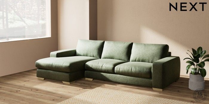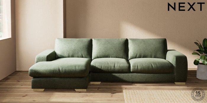 7.2.10 Houghton Deep Relaxed Sit Sofa Chaise Bed - Left Hand Boucle Chenille Dark Moss Green Large Square Angle - Light | Made Click here to use our website with more accessibility support, for example screen readers