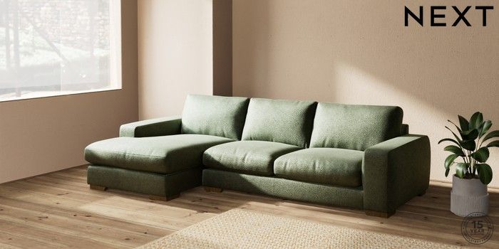 7.2.10 Houghton Deep Relaxed Sit Sofa Chaise Bed - Left Hand Boucle Chenille Dark Moss Green Large Square Angle - Mid | Made Click here to use our website with more accessibility support, for example screen readers