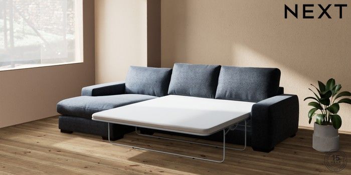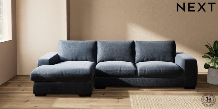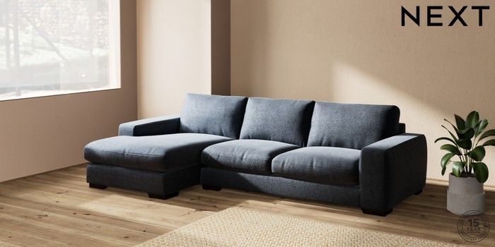 7.2.10 Houghton Deep Relaxed Sit Sofa Chaise Bed - Left Hand Boucle Chenille Dark Slate Blue Large Square Angle - Dark | Made Click here to use our website with more accessibility support, for example screen readers