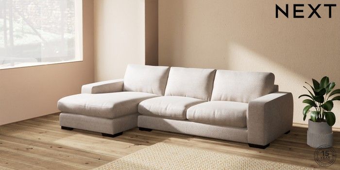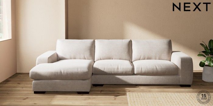 7.2.10 Houghton Deep Relaxed Sit Sofa Chaise Bed - Left Hand Boucle Chenille Light Natural Large Square Angle - Dark | Made Click here to use our website with more accessibility support, for example screen readers