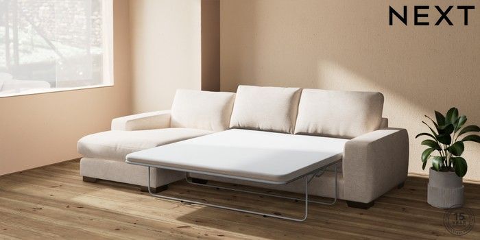 7.2.10 Houghton Deep Relaxed Sit Sofa Chaise Bed - Left Hand Boucle Chenille Oyster Large Square Angle - Gunmetal | Made Click here to use our website with more accessibility support, for example screen readers