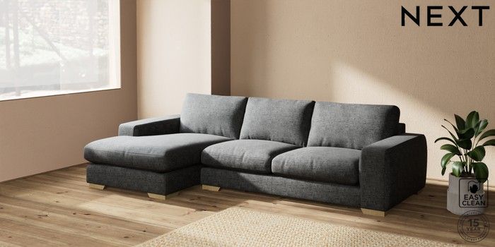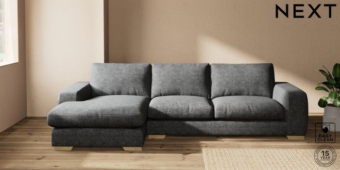 7.2.10 Houghton Deep Relaxed Sit Sofa Chaise Bed - Left Hand Boucle Weave Easy Clean Charcoal Grey Large Square Angle - Light | Made Click here to use our website with more accessibility support, for example screen readers