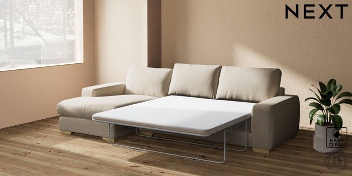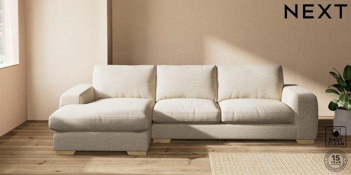 7.2.10 Houghton Deep Relaxed Sit Sofa Chaise Bed - Left Hand Boucle Weave Easy Clean Dark Natural Large Square Angle - Light | Made Click here to use our website with more accessibility support, for example screen readers