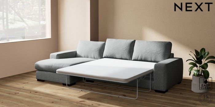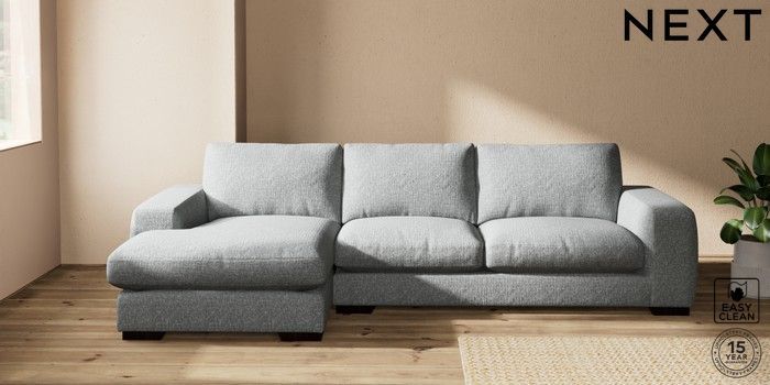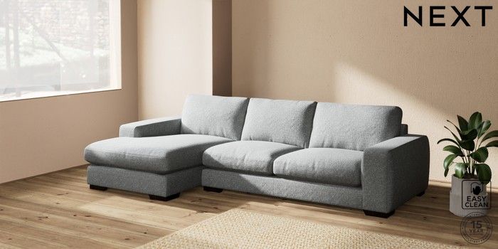 7.2.10 Houghton Deep Relaxed Sit Sofa Chaise Bed - Left Hand Chunky Boucle Easy Clean Mid Grey Large Square Angle - Dark | Made Click here to use our website with more accessibility support, for example screen readers