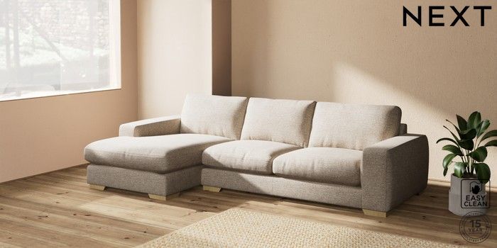 7.2.10 Houghton Deep Relaxed Sit Sofa Chaise Bed - Left Hand Chunky Boucle Easy Clean Mid Natural Large Square Angle - Light | Made Click here to use our website with more accessibility support, for example screen readers