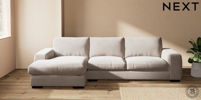 7.2.10 Houghton Deep Relaxed Sit Sofa Chaise Bed - Left Hand Chunky Chenille Light Dove Large Square Angle - Dark | Made Click here to use our website with more accessibility support, for example screen readers