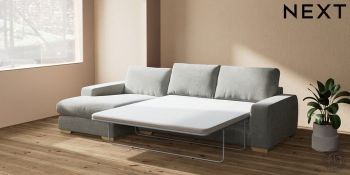 7.2.10 Houghton Deep Relaxed Sit Sofa Chaise Bed - Left Hand Chunky Chenille Light Grey Large Square Angle - Light | Made Click here to use our website with more accessibility support, for example screen readers