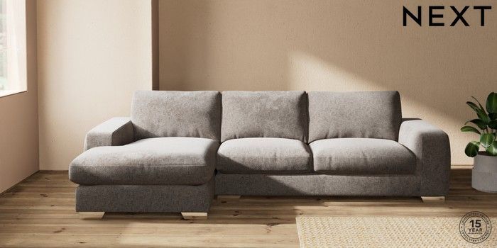 7.2.10 Houghton Deep Relaxed Sit Sofa Chaise Bed - Left Hand Chunky Chenille Mink Brown Large Square Angle - Chrome Metal | Made Click here to use our website with more accessibility support, for example screen readers