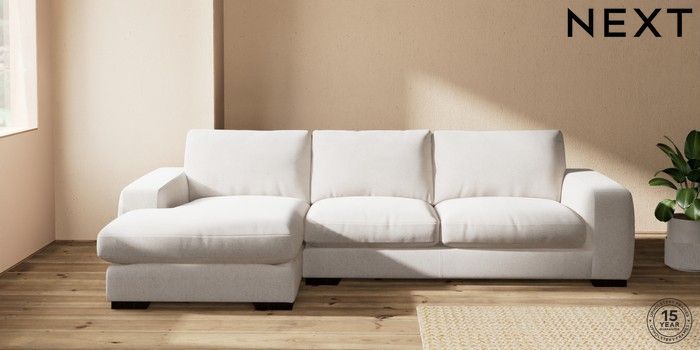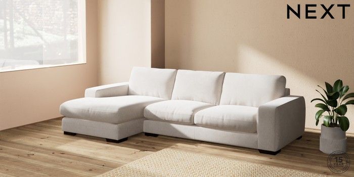 7.2.10 Houghton Deep Relaxed Sit Sofa Chaise Bed - Left Hand Chunky Chenille Oyster Large Square Angle - Dark | Made Click here to use our website with more accessibility support, for example screen readers