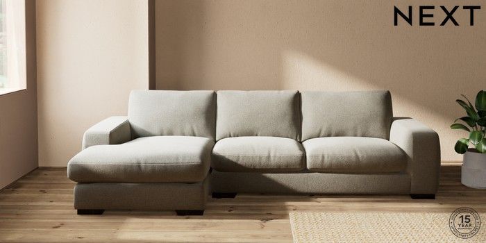 7.2.10 Houghton Deep Relaxed Sit Sofa Chaise Bed - Left Hand Chunky Marl Light Olive Green Large Square Angle - Dark | Made Click here to use our website with more accessibility support, for example screen readers