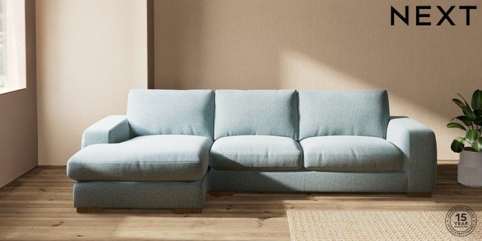 7.2.10 Houghton Deep Relaxed Sit Sofa Chaise Bed - Left Hand Chunky Marl Mid Blue Large Square Angle - Mid | Made Click here to use our website with more accessibility support, for example screen readers