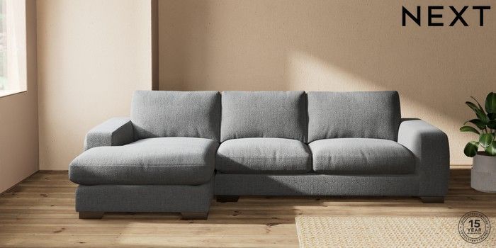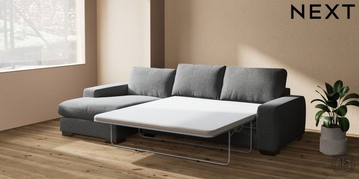 7.2.10 Houghton Deep Relaxed Sit Sofa Chaise Bed - Left Hand Chunky Texture Dark Grey Large Square Angle - Gunmetal | Made Click here to use our website with more accessibility support, for example screen readers