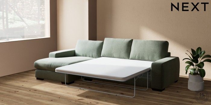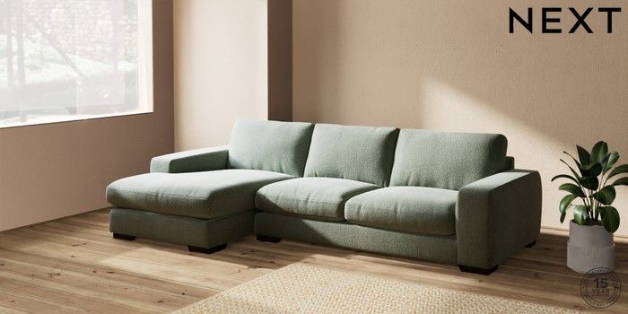 7.2.10 Houghton Deep Relaxed Sit Sofa Chaise Bed - Left Hand Chunky Texture Mid Forest Green Large Square Angle - Dark | Made Click here to use our website with more accessibility support, for example screen readers