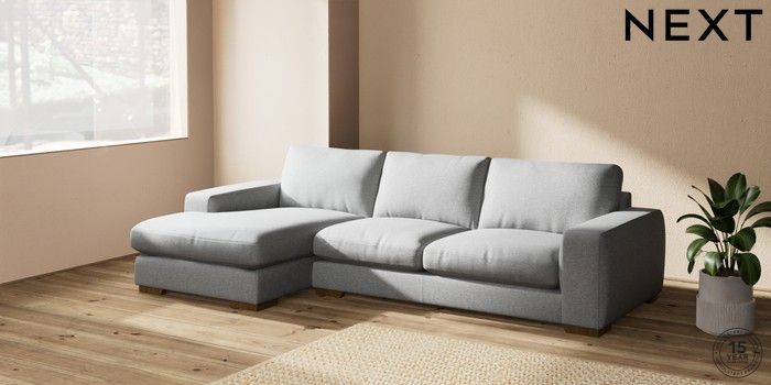 7.2.10 Houghton Deep Relaxed Sit Sofa Chaise Bed - Left Hand Chunky Weave Mid Grey Large Square Angle - Mid | Made Click here to use our website with more accessibility support, for example screen readers