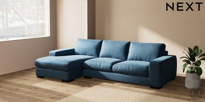 7.2.10 Houghton Deep Relaxed Sit Sofa Chaise Bed - Left Hand Cotswold Chenille Dark Blue Large Square Angle - Dark | Made Click here to use our website with more accessibility support, for example screen readers