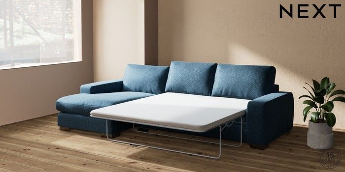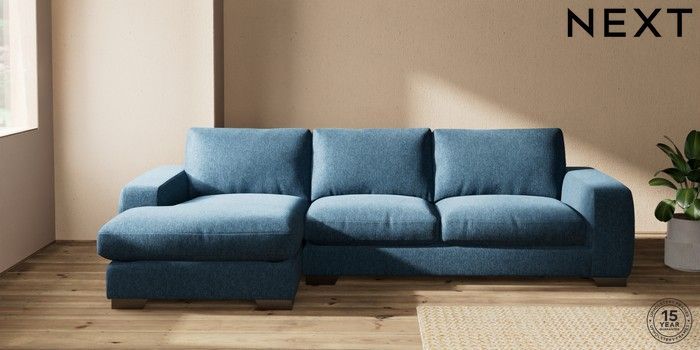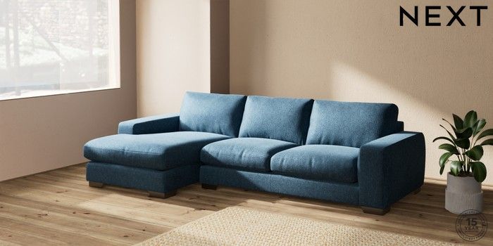 7.2.10 Houghton Deep Relaxed Sit Sofa Chaise Bed - Left Hand Cotswold Chenille Dark Blue Large Square Angle - Gunmetal | Made Click here to use our website with more accessibility support, for example screen readers