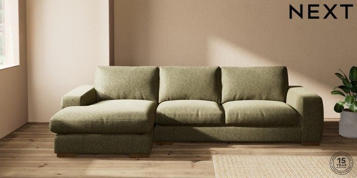 7.2.10 Houghton Deep Relaxed Sit Sofa Chaise Bed - Left Hand Cotswold Chenille Dark Green Large Square Angle - Mid | Made Click here to use our website with more accessibility support, for example screen readers