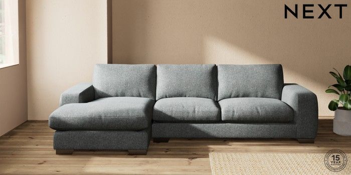 7.2.10 Houghton Deep Relaxed Sit Sofa Chaise Bed - Left Hand Cotswold Chenille Dark Grey Large Square Angle - Gunmetal | Made Click here to use our website with more accessibility support, for example screen readers
