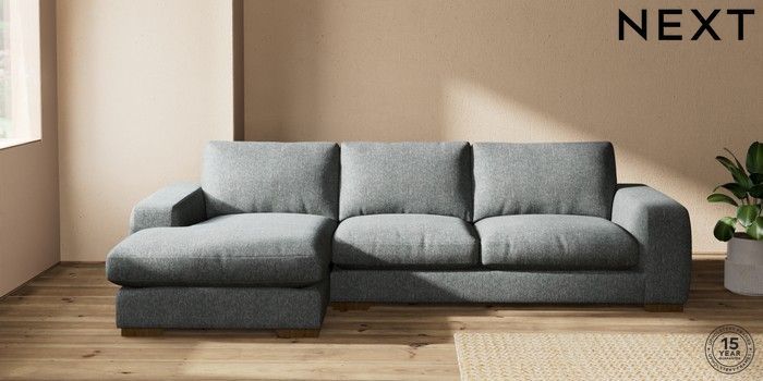 7.2.10 Houghton Deep Relaxed Sit Sofa Chaise Bed - Left Hand Cotswold Chenille Dark Grey Large Square Angle - Mid | Made Click here to use our website with more accessibility support, for example screen readers
