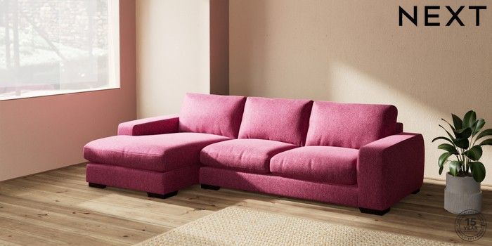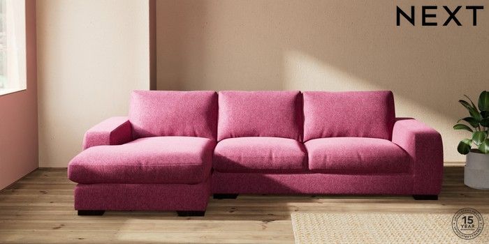 7.2.10 Houghton Deep Relaxed Sit Sofa Chaise Bed - Left Hand Cotswold Chenille Dark Raspberry Pink Large Square Angle - Dark | Made Click here to use our website with more accessibility support, for example screen readers