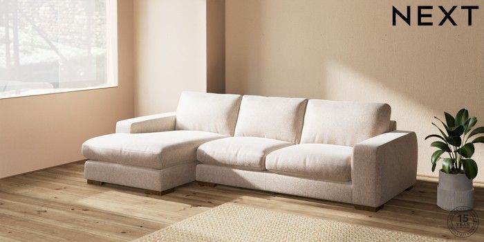 7.2.10 Houghton Deep Relaxed Sit Sofa Chaise Bed - Left Hand Cotswold Chenille Light Natural Large Square Angle - Mid | Made Click here to use our website with more accessibility support, for example screen readers