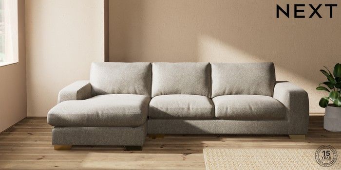 7.2.10 Houghton Deep Relaxed Sit Sofa Chaise Bed - Left Hand Cotswold Chenille Mid Mink Brown Large Square Angle - Brushed Brass | Made Click here to use our website with more accessibility support, for example screen readers