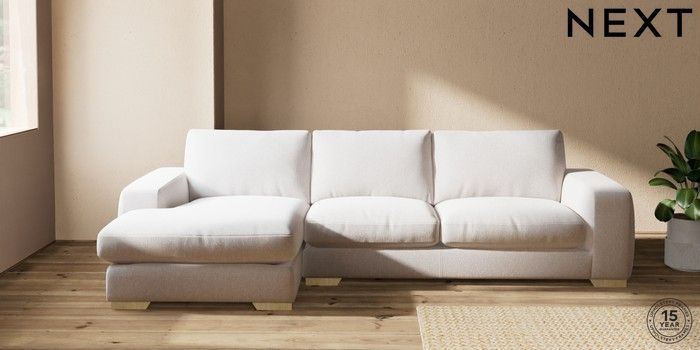 7.2.10 Houghton Deep Relaxed Sit Sofa Chaise Bed - Left Hand Cotswold Chenille Oyster Large Square Angle - Light | Made Click here to use our website with more accessibility support, for example screen readers