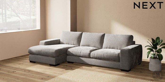 7.2.10 Houghton Deep Relaxed Sit Sofa Chaise Bed - Left Hand Distressed Velour French Grey Large Square Angle - Dark | Made Click here to use our website with more accessibility support, for example screen readers