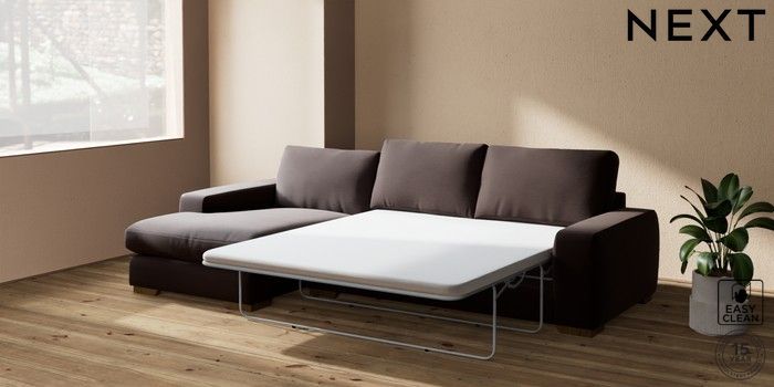 7.2.10 Houghton Deep Relaxed Sit Sofa Chaise Bed - Left Hand Fine Chenille Easy Clean Chocolate Brown Large Square Angle - Mid | Made Click here to use our website with more accessibility support, for example screen readers