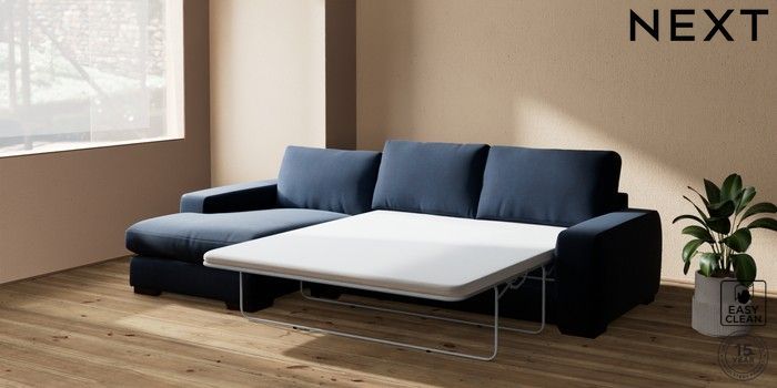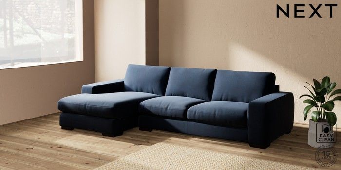 7.2.10 Houghton Deep Relaxed Sit Sofa Chaise Bed - Left Hand Fine Chenille Easy Clean Dark Navy Blue Large Square Angle - Dark | Made Click here to use our website with more accessibility support, for example screen readers