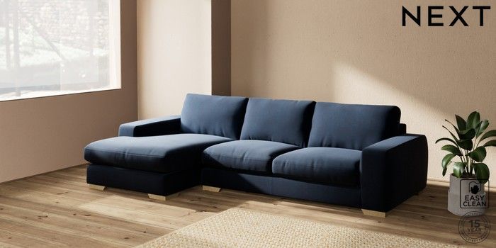 7.2.10 Houghton Deep Relaxed Sit Sofa Chaise Bed - Left Hand Fine Chenille Easy Clean Dark Navy Blue Large Square Angle - Light | Made Click here to use our website with more accessibility support, for example screen readers