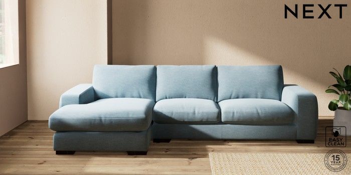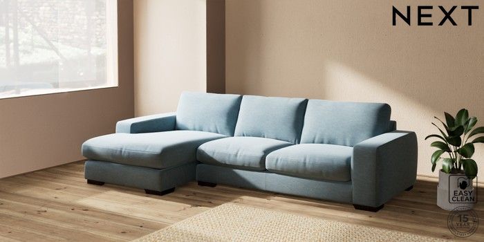 7.2.10 Houghton Deep Relaxed Sit Sofa Chaise Bed - Left Hand Fine Chenille Easy Clean Mid Blue Large Square Angle - Dark | Made Click here to use our website with more accessibility support, for example screen readers